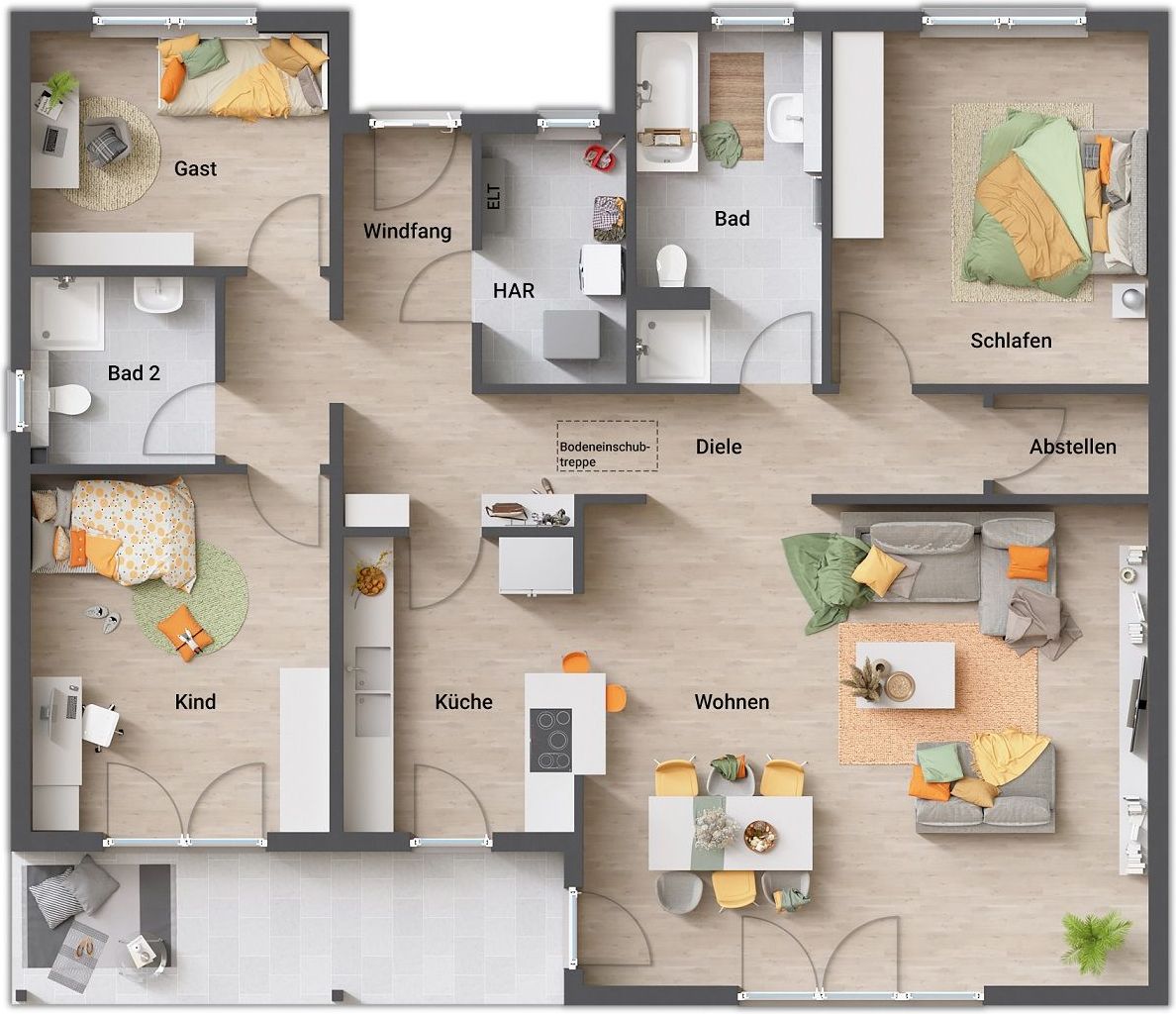 Um möglichst lange im eigenen Haus leben zu können, sind Sie mit dem komfortPaket schon frühzeitig bestens gerüstet. Außerdem ist dieses Haus auf Wunsch auch mit Keller sowie als EnergieSparhaus erhältlich.