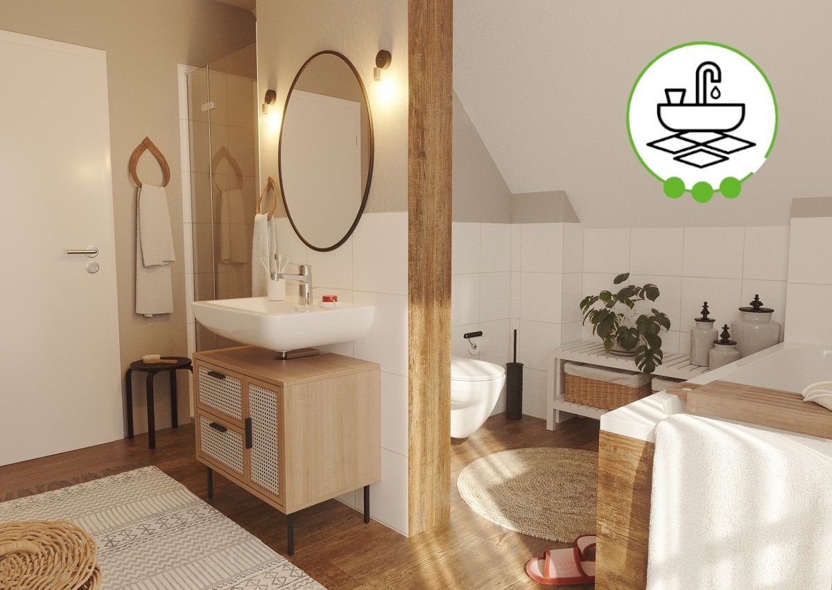 Auch im Sanitärbereich sind viele der heute von unseren Kunden gewünschten Gestaltungen und Materialien inklusive.