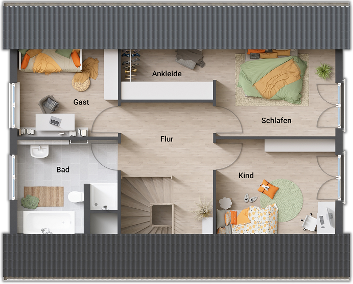 Maar wij denken vandaag ook aan morgen en bouwen inclusief uw persoonlijke solide huis Volledig uitgerust, bijv. met