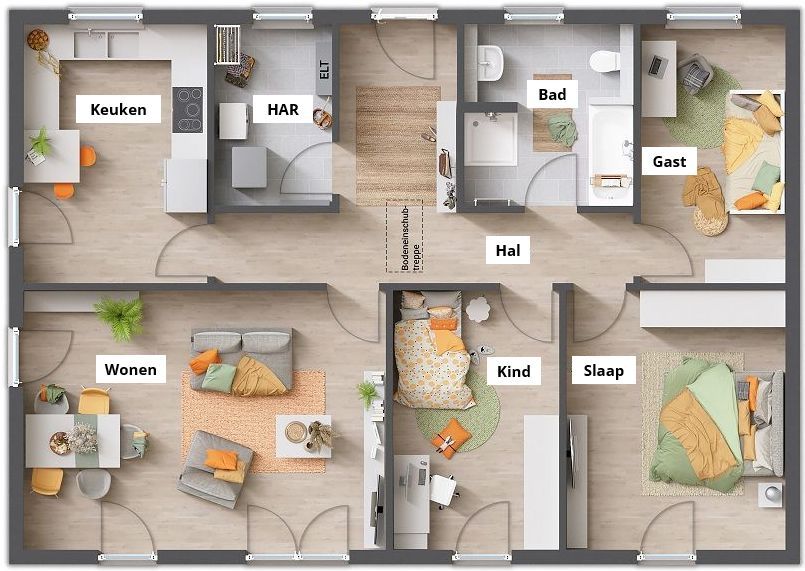 De woonruimteberekening is uitgevoerd conform de woonruimteregelgeving. Inclusief 6,00 m² bruikbare ruimte. Kleine afwijkingen tot 3% op basis van het totaal gebruiks- en woonoppervlak zijn ter plaatse mogelijk. Verdere afwijkingen kunnen ontstaan als de standaardversies worden gewijzigd. Afbeelding kan speciale verzoeken bevatten.