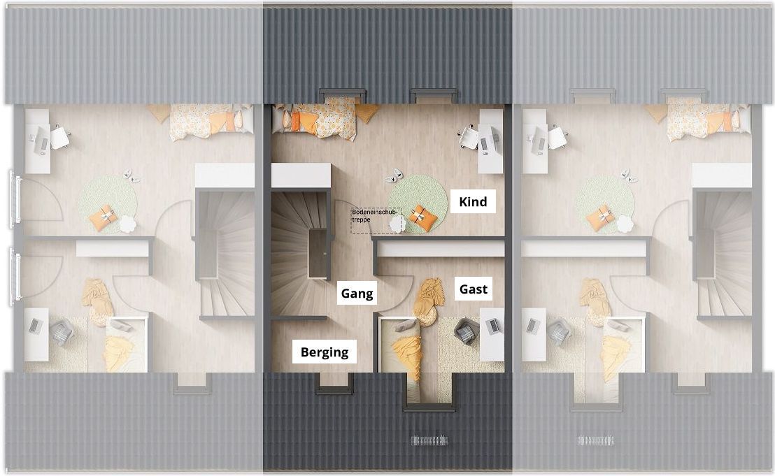Deze woning is beschikbaar vanaf € 272.600 (district Euskirchen) of € 278.600 (district Vulkaaneifel). De hier getoonde prijs heeft betrekking op de tussenwoning.