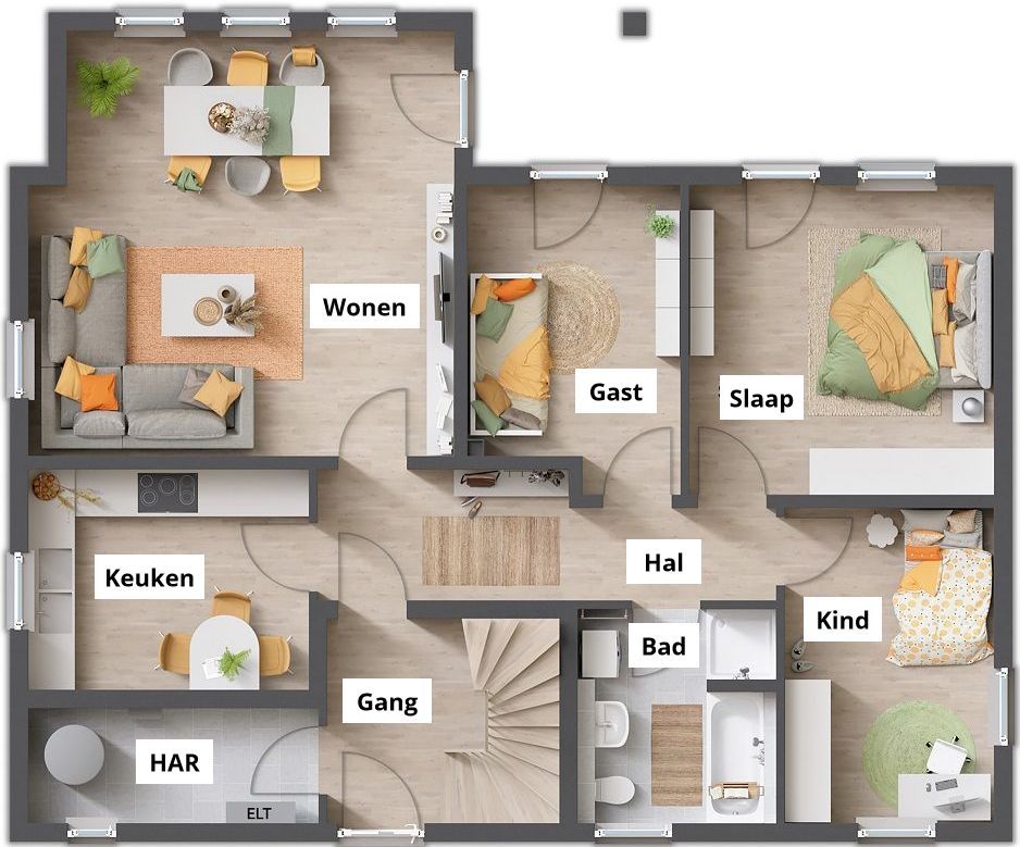 Wij denken vandaag al aan morgen en bouwen aan uw persoonlijke solide huis inclusief volledige uitrusting, bijv. met