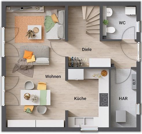 Sie wünschen sich ein Haus, das Ihnen alles bietet – ohne überflüssige Spielereien? Dann treten Sie ein: Ihr neues Zuhause empfängt Sie mit hellen und freundlichen Räumen. Die Diele führt Sie in das gemütliche Wohnzimmer, von wo aus Sie einen zauberhaften Blick in Ihren Garten haben. Großflächige Fenster lassen die Sonne ins Haus. Die Essecke bietet Platz für gemeinsame Abendessen im Kreise der Liebsten. Die gleich nebenliegende Küche bietet Hobby-Köchen Raum für neue Kreationen.