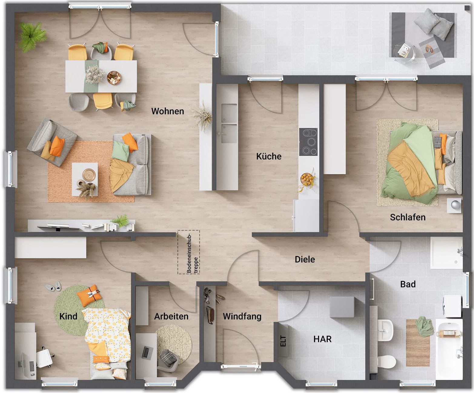Wir denken heute schon an Morgen und bauen Ihr persönliches Massivhaus inklusive Vollausstattung, z.B. mit